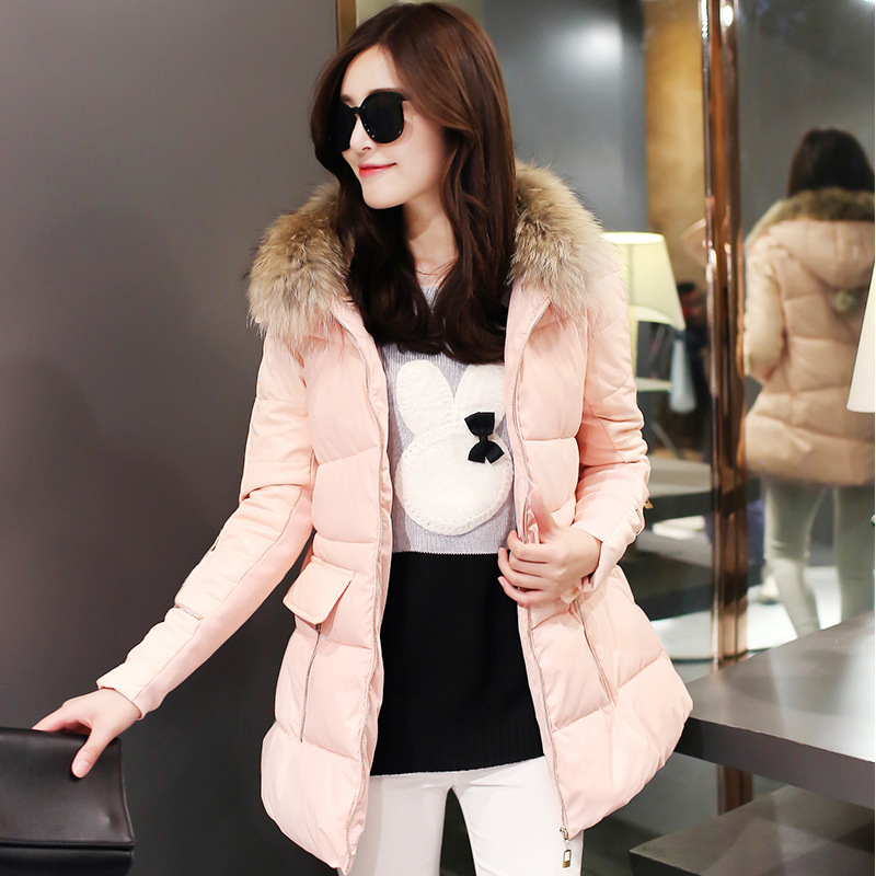 2015大碼女裝韓版新款大毛領(lǐng)中長款棉服加厚外套胖mm冬裝寬松棉衣 /