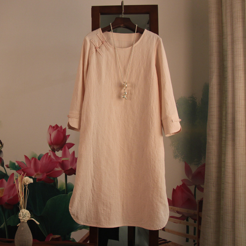 原創(chuàng)設(shè)計(jì)秋冬季復(fù)古寬松 提花棉麻連衣裙長(zhǎng)袍子 大碼女裝 /