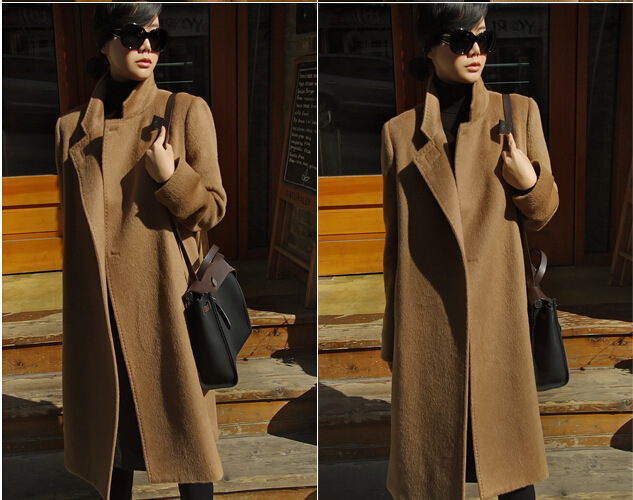 2015秋冬新款 歐美風范時尚立領(lǐng)修身超長款羊絨大衣毛呢外套女 /