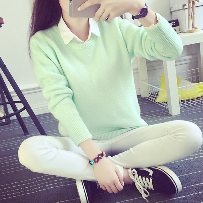 2015秋冬打底衫長袖韓版女裝新款純色寬松糖果色套頭毛衣女 /