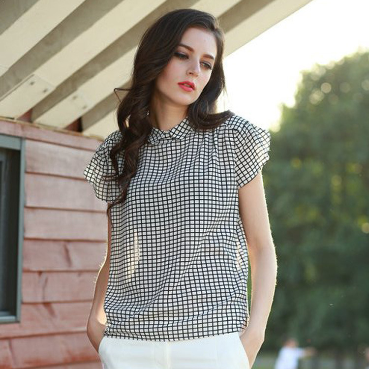 歐洲站hy2秋裝新品女裝棉麻格子t恤 歐美短袖t恤女 打底衫秋代理 /