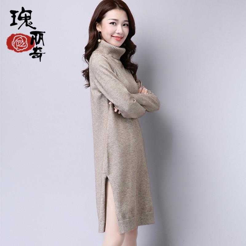 2015秋冬新款純色高領(lǐng)套頭寬松打底針織衫下擺開叉中長(zhǎng)款毛衣女 /