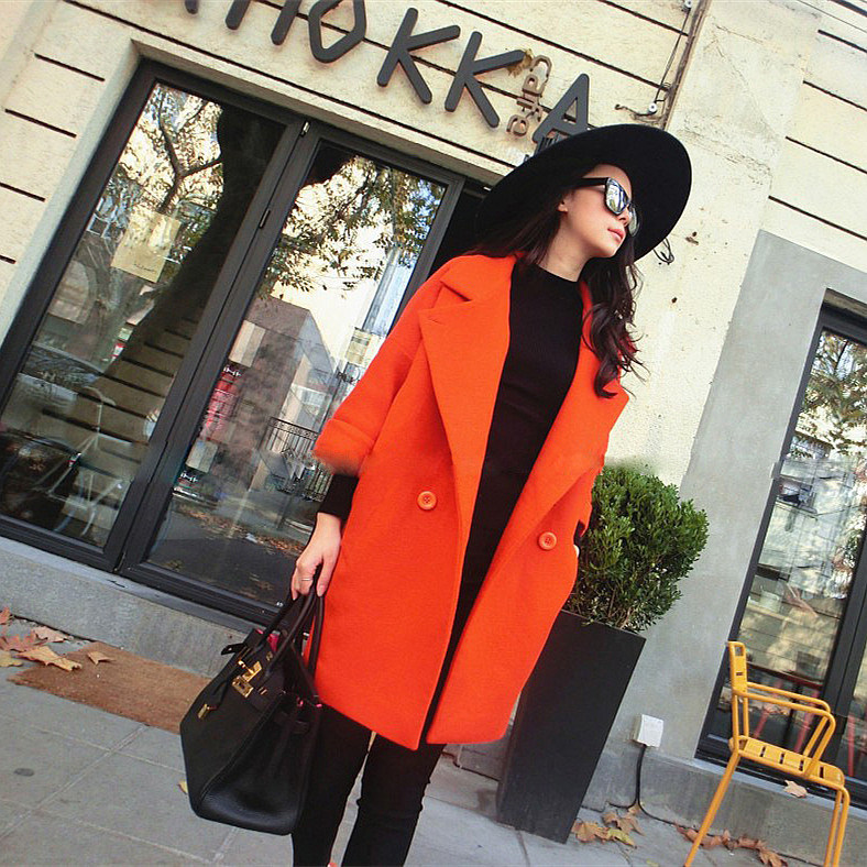 加厚妮子風(fēng)衣寬松羊毛呢外套廓形羊絨大衣女中長款 /