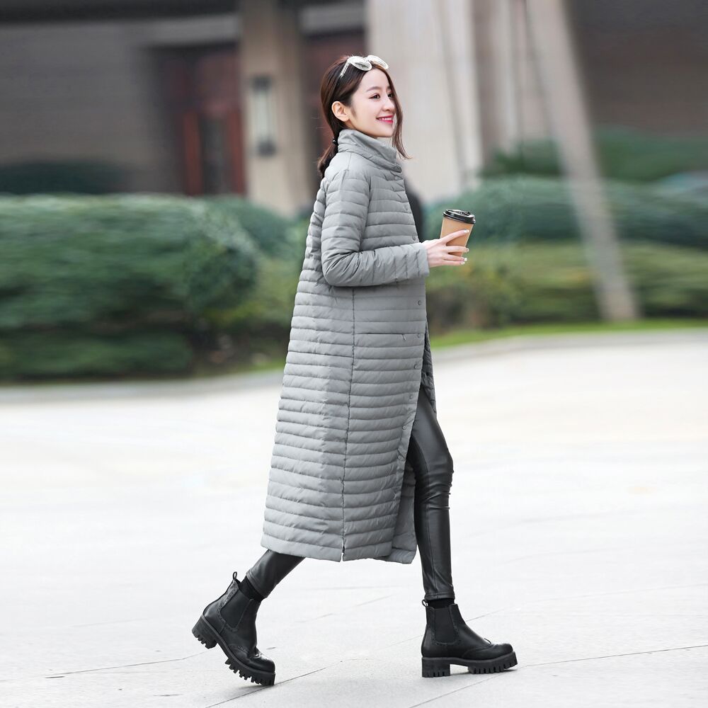 2015輕薄羽絨服女長(zhǎng)款過(guò)膝時(shí)尚歐美顯瘦百搭女裝外套秋冬新品服飾 /