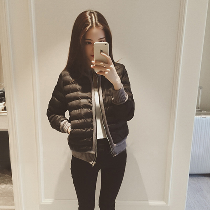 冬裝新款糖果色韓版女裝短款修身拉線連帽外套時尚羽絨棉服 /