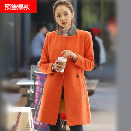 2015冬裝新品韓版中長款風(fēng)衣毛呢外套顯瘦呢子大衣一粒扣大碼女裝 /