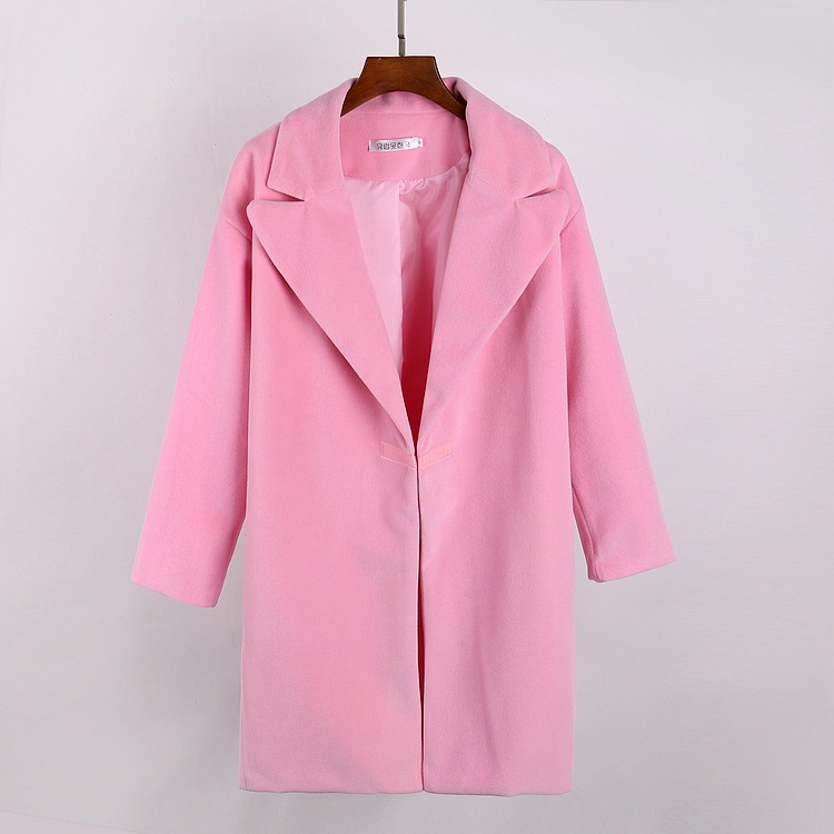 現(xiàn)貨 秋冬克拉戀人唐嫣米朵同款粉紅色中長款毛呢大衣外套 /