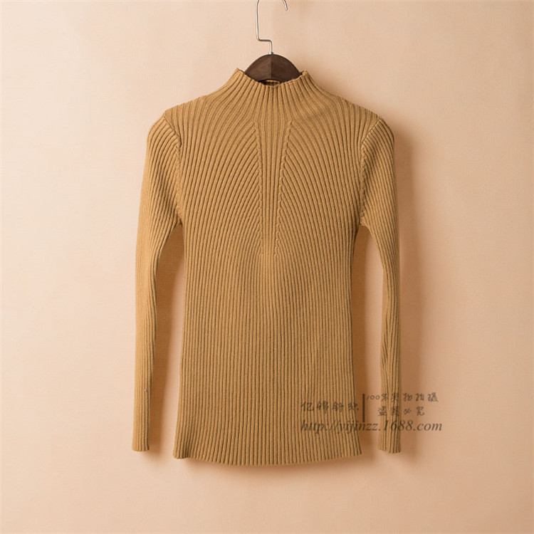 工廠批發(fā)2015秋冬新款半高領(lǐng)保暖打底衫套頭毛衣女針織修身 /