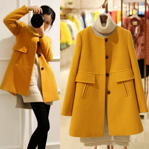 中長款毛呢外套女 2015女裝秋冬裝新款厚上衣 韓版長袖呢子大衣 /