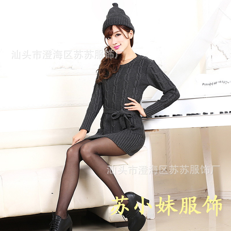 【susu毛衣】新秋冬鏈條馬海毛中長(zhǎng)款百搭套頭打底女款包臀連衣裙 /