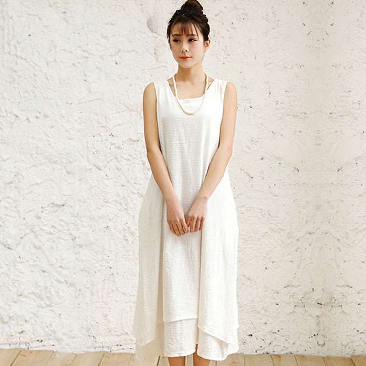 爆款百秀坊小暖三五年棉麻原創(chuàng)女裝文藝范文藝無袖掛里女式連衣裙 /