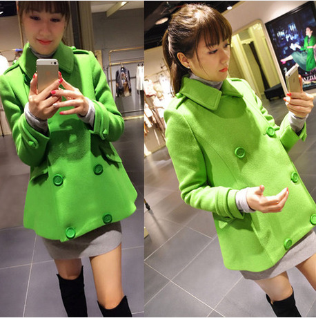 2014秋冬季新款韓版小香風(fēng)雙排扣毛呢外套女裝羊毛呢子大衣 /