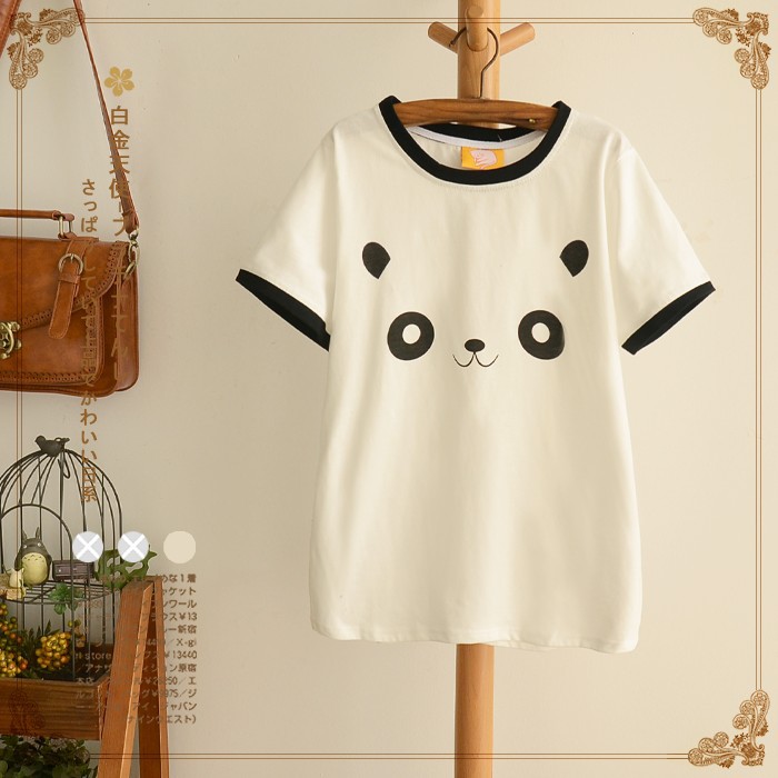 日系夏季新款森女可愛熊貓印花圓領(lǐng)棉質(zhì)百搭短袖T恤A15157 /