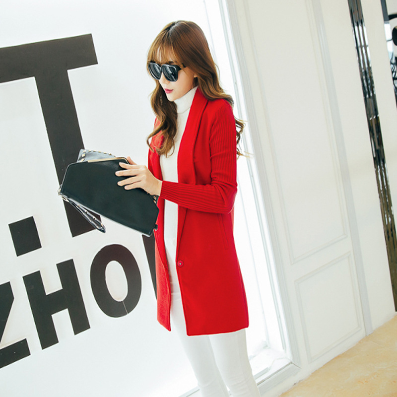 秋冬新款韓版中長款開衫毛呢大衣保暖針織毛呢保暖風(fēng)衣外套 /