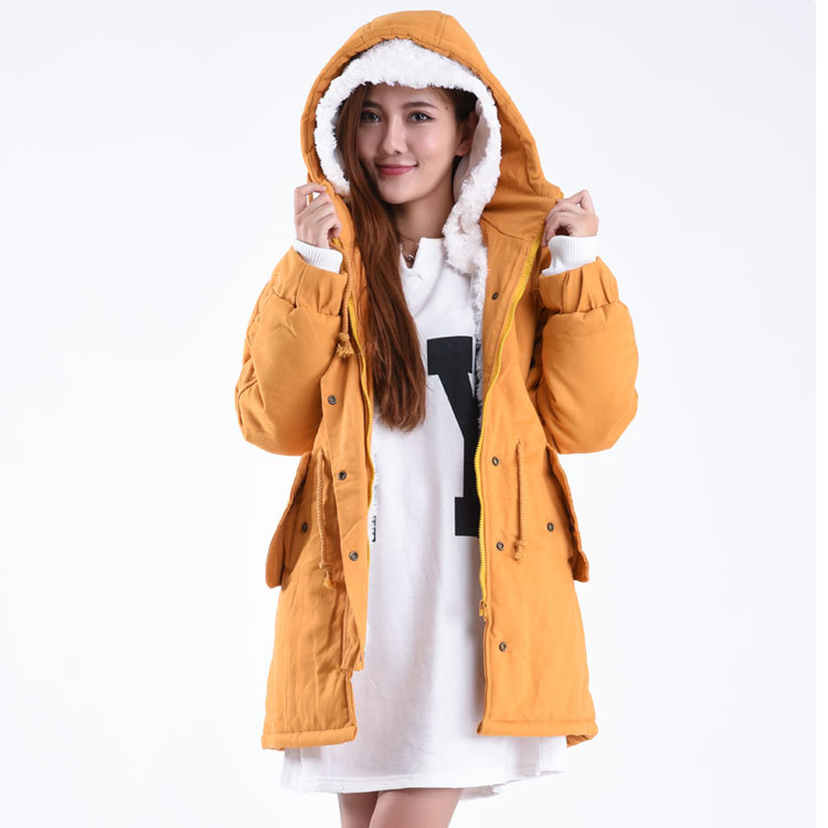 2015新款韓版冬季女裝中長款寬松羊羔毛鹿皮絨保暖加厚棉上衣外套 /