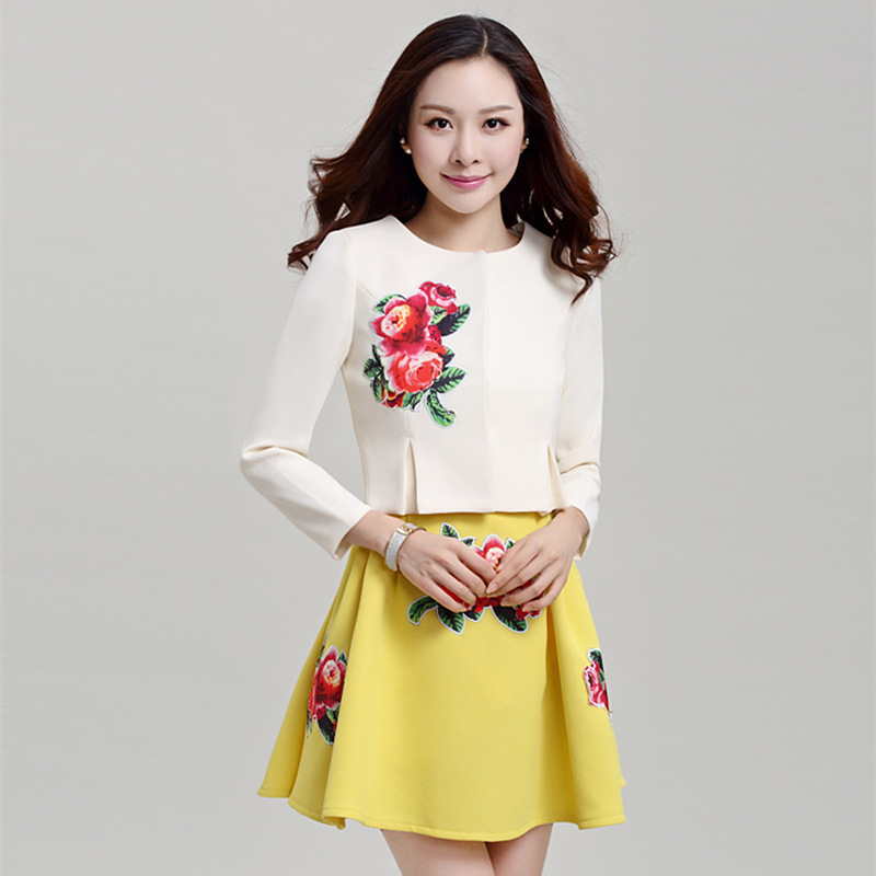 簡介: 貨源類別現(xiàn)貨 主圖來源實拍有模特 風格歐美 圖案純色 工藝刺繡/繡花 產(chǎn)地廣州 庫存類型整單 款式基本款 組合形式兩件套 裙長短裙 裙型A字裙 領(lǐng)型圓領(lǐng) 袖型常規(guī)袖 袖長長袖 腰型中腰 衣門襟拉鏈 流行元素拼接,扎染,刺繡,3D/立體圖案,立體裝飾 上市年份/季節(jié)2014秋季 面料名稱提花面料 主面料成分聚酯纖維(滌綸)