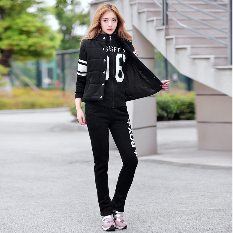 2015秋冬新款加絨加厚女士衛(wèi)衣三件套女裝韓版修身長袖運動套裝 /