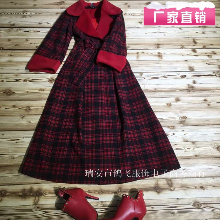 廠家直供加厚時(shí)尚格子大衣高檔毛呢長款大衣個性女裝2015冬季新款 /