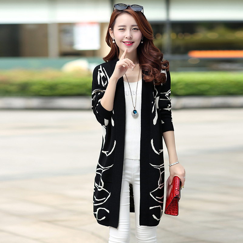 5829 2015秋冬新款韓版撞色長(zhǎng)袖毛衣外套長(zhǎng)款開(kāi)衫女式針織衫批發(fā) /