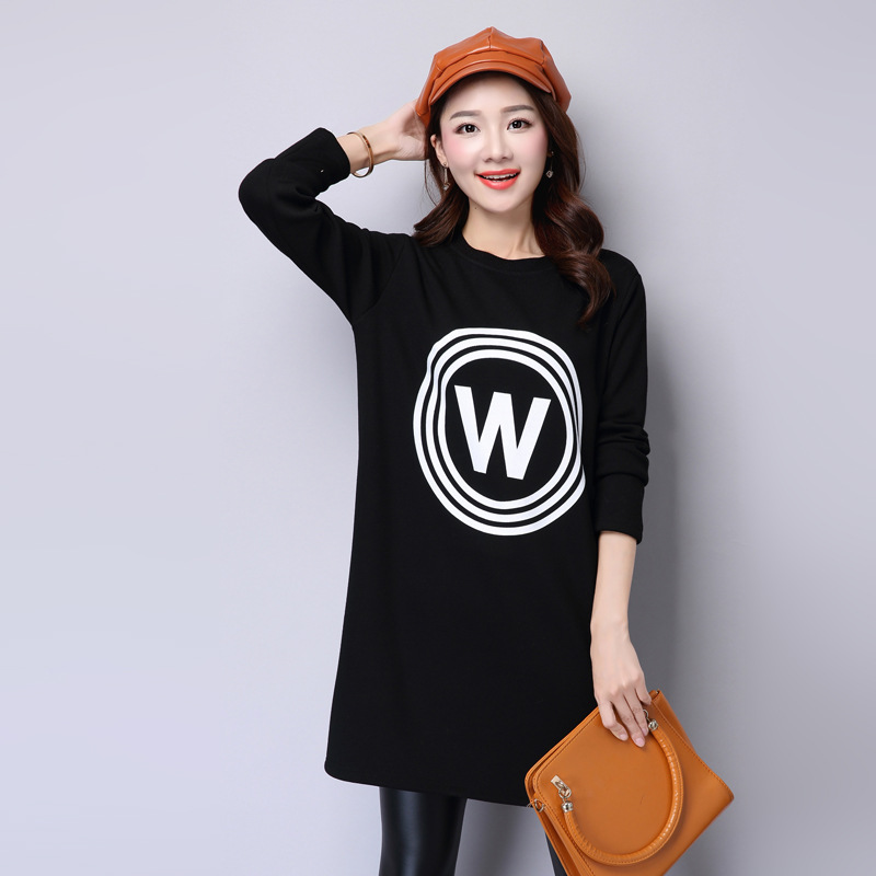 冬裝直筒中長款加絨加厚毛衣印花純色修身大碼羊毛打底包臀連衣裙 /