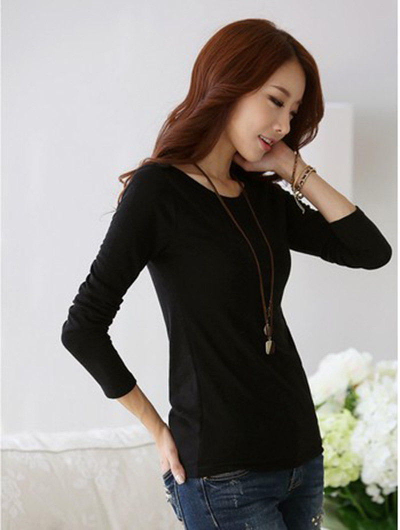 2015加厚加絨打底衫女長袖秋冬純棉黑色緊身圓領(lǐng)內(nèi)搭長袖女韓版 /