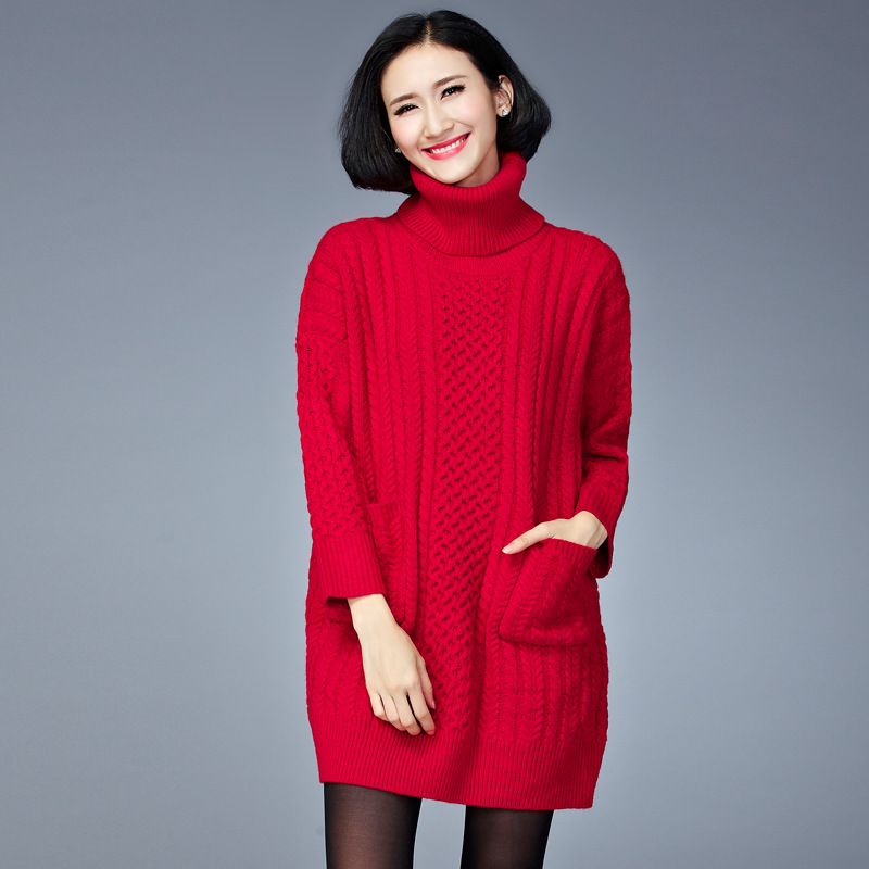 秋冬新款大碼女裝打底針織衫胖MM韓版寬松顯瘦高領(lǐng)中長(zhǎng)款毛衣外套 /