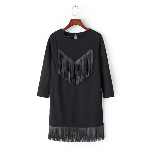 15秋季新款時尚連衣裙歐美羅馬手工流蘇工藝羅馬棉連衣短裙 /