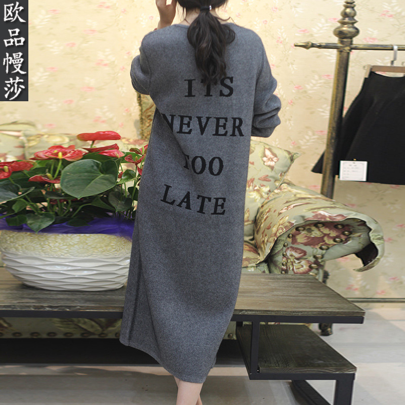 2015新款歐美風(fēng)休閑字母貂絨大衣 加長款長袖貂絨開衫寬松外套女 /