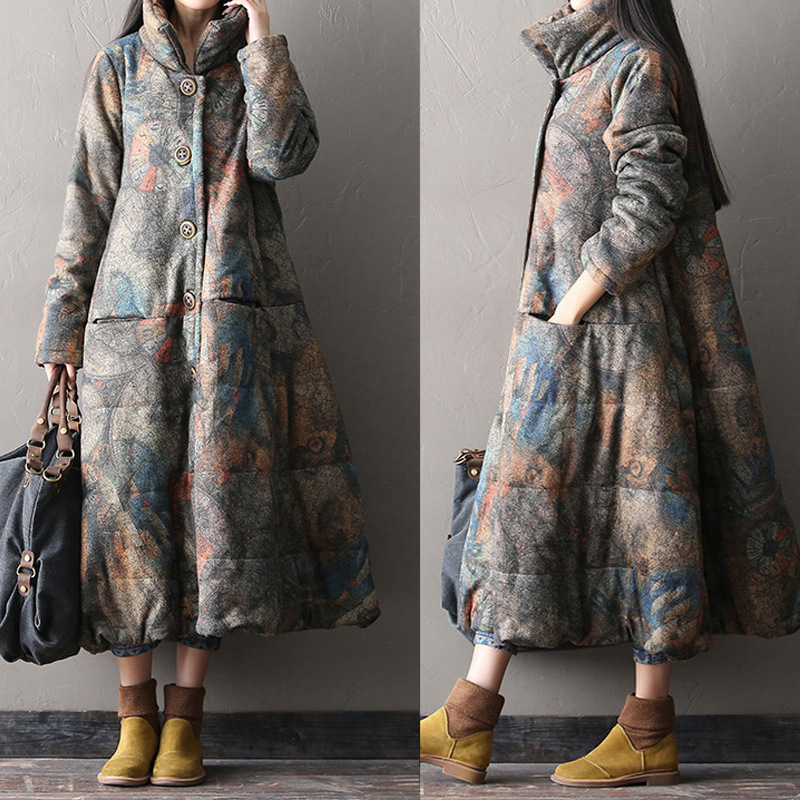 冬季新品蠟染印花長款面包服 女高領A字擺加厚棉大衣潮 批發(fā) /