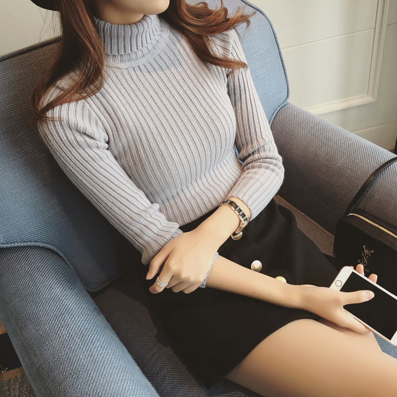 2015秋冬新品韓版時(shí)尚豎紋緊身高領(lǐng)長(zhǎng)袖打底針織衫學(xué)生T恤上衣女 /