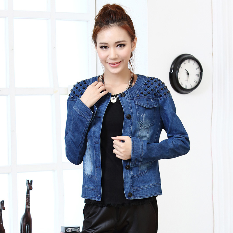 2014秋冬新款韓版女裝 修身短款長(zhǎng)袖休閑百搭牛仔外套 9009# /