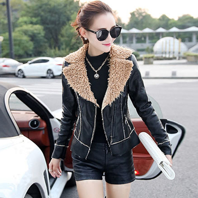 歐美加厚加絨女士皮衣短款PU皮外套修身小夾克機(jī)車服冬裝CSYL8820 /