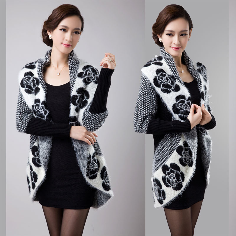 2015秋春裝女針織開衫韓版中長款馬海毛衣披肩花朵外套CMKP50 /