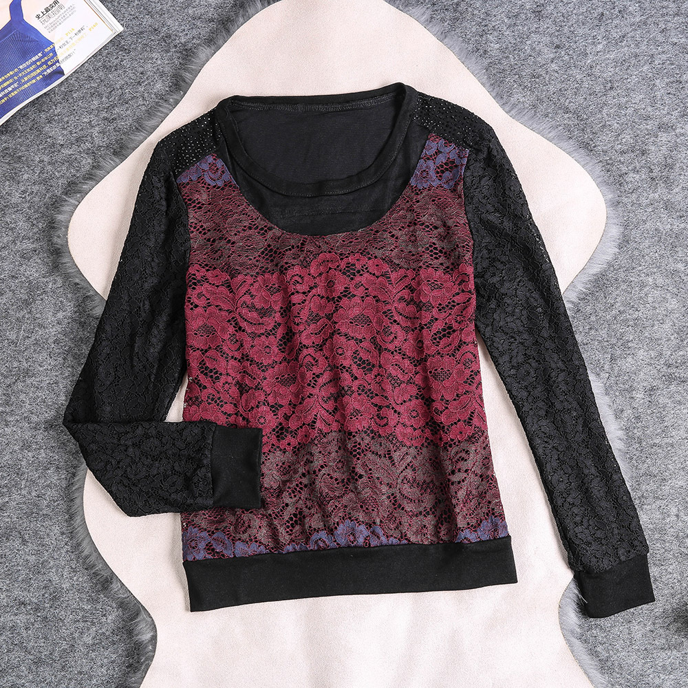 2015秋季蕾絲繡花媽媽裝長袖T恤 新款時尚休閑中老年修身打底衫 /