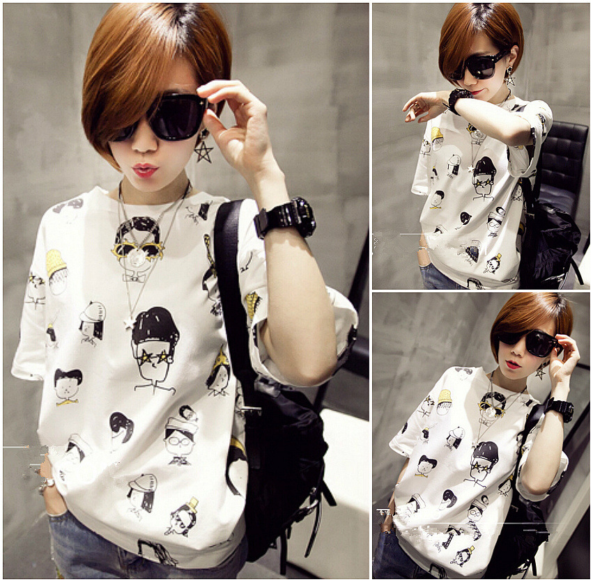 韓國眼鏡卡通人物長款寬松百搭T恤 /