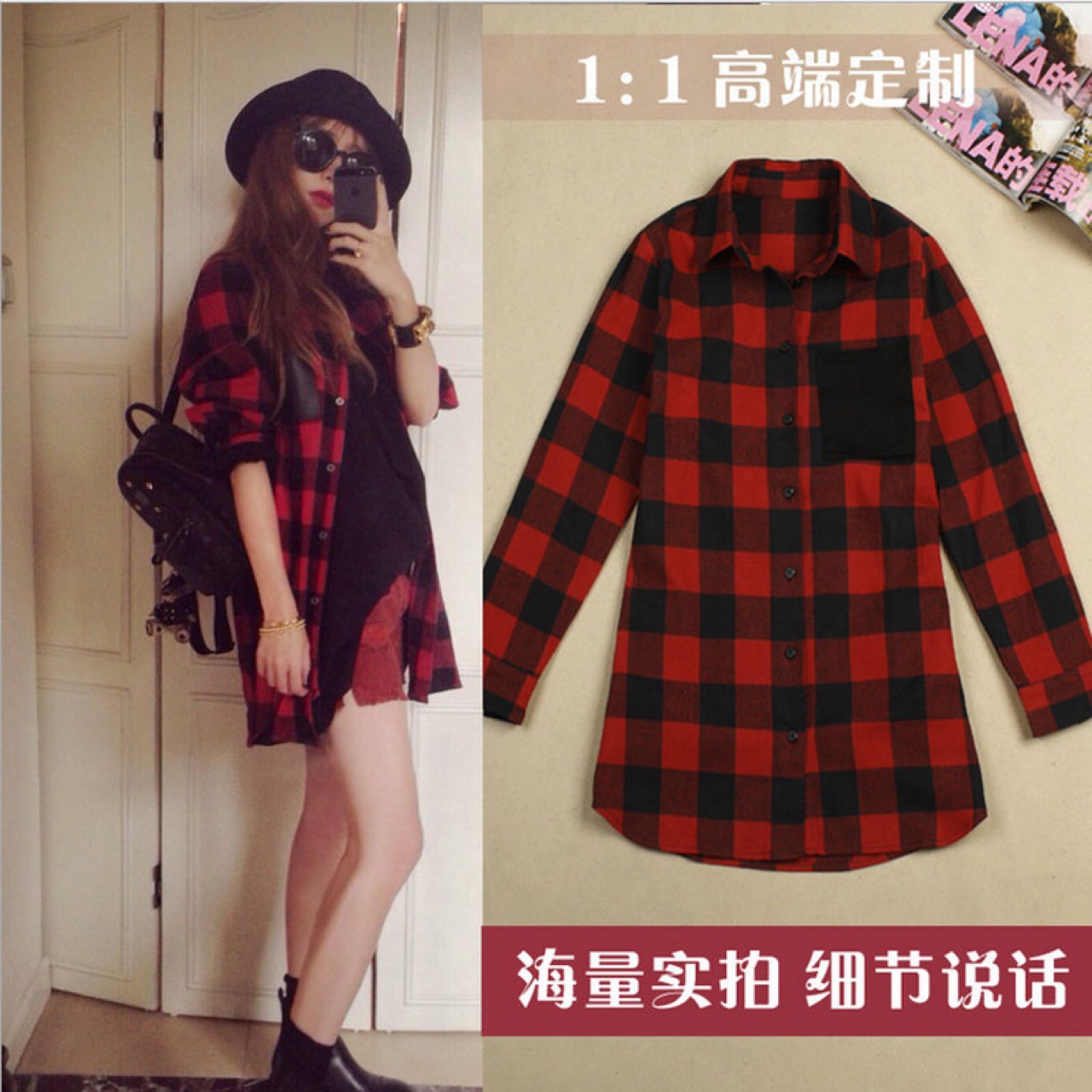 小辣椒格子加絨襯衫女純棉經(jīng)典紅色格子寬松襯衫長(zhǎng)袖打底襯衣1022 /