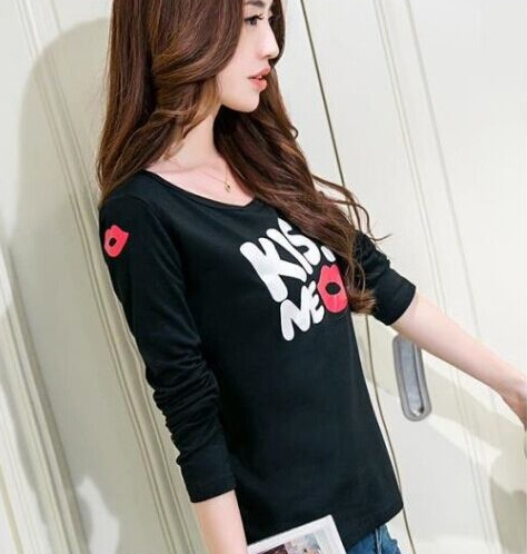 新款熱賣長袖T恤女裝修身韓版女士印花外穿T恤打底衫誠招代理 /