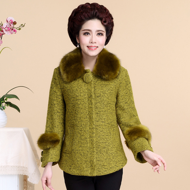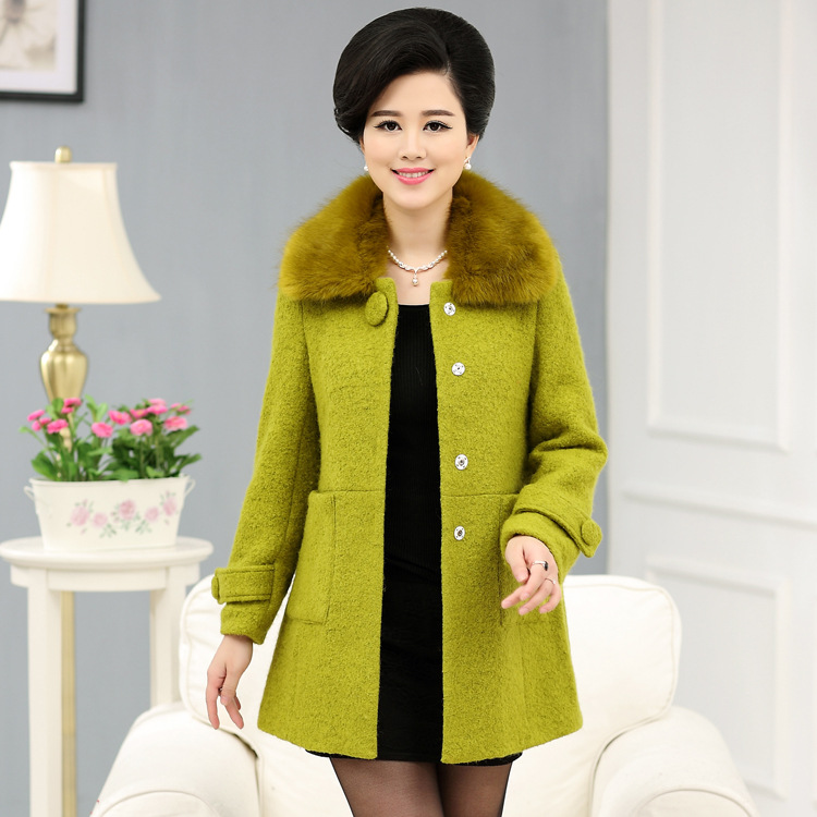 中老年女裝冬裝媽媽裝羊毛羊絨大衣 大碼毛領(lǐng)中長款毛呢外套批發(fā) /