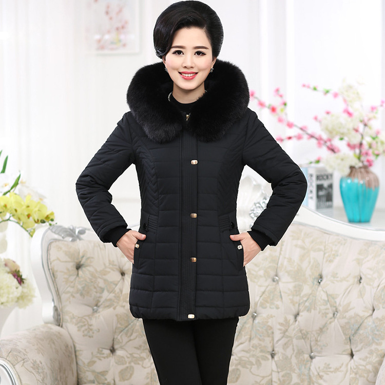 2015年冬新款女裝 休閑大碼中老年女裝 加厚連帽媽媽裝棉衣批發(fā) /