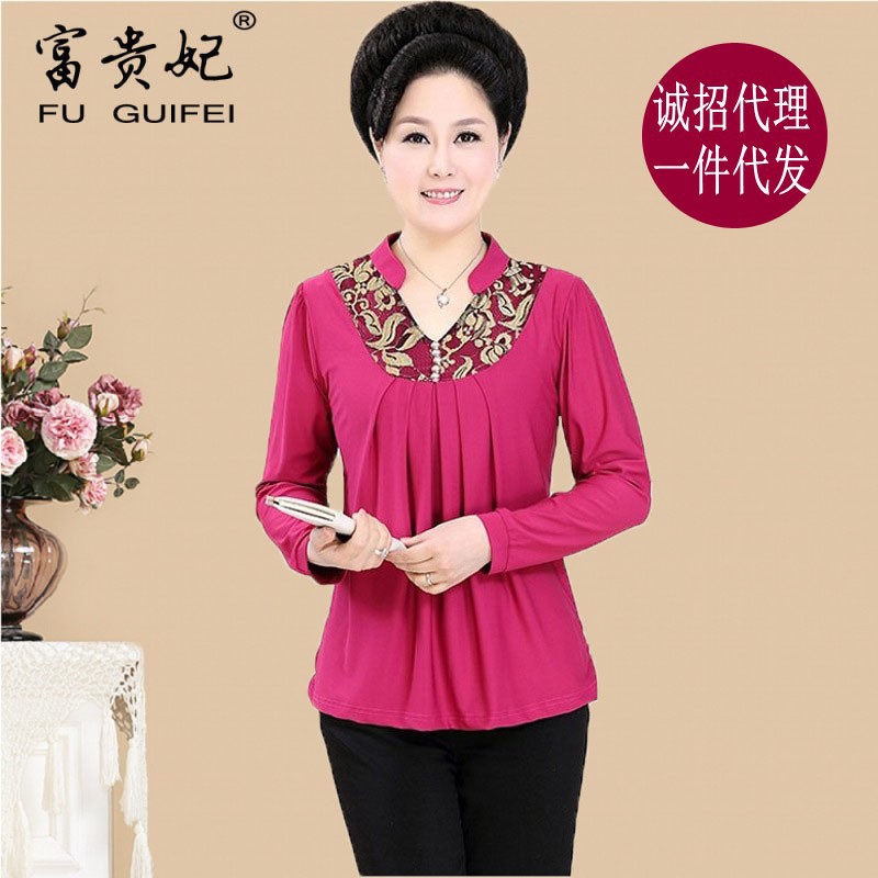 批發(fā)中老年女裝秋裝翻領(lǐng)大碼長袖T恤媽媽裝秋季新款打底上衣批發(fā) /
