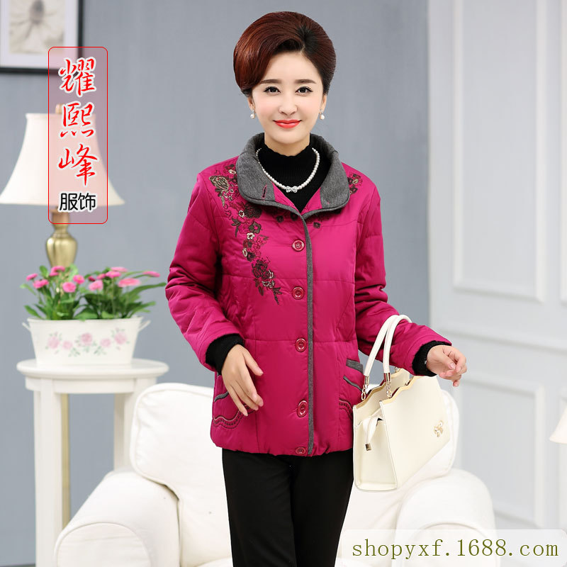 15秋冬季新款媽媽裝大碼棉衣休閑時尚中老年女裝繡花棉服短款上衣 /