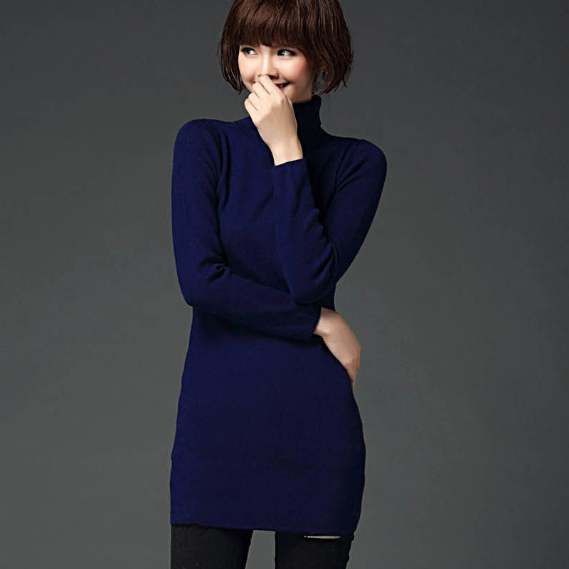 韓版2015秋冬新品高領(lǐng)毛衣女套頭中長款純色針織修身長袖打底衫 /