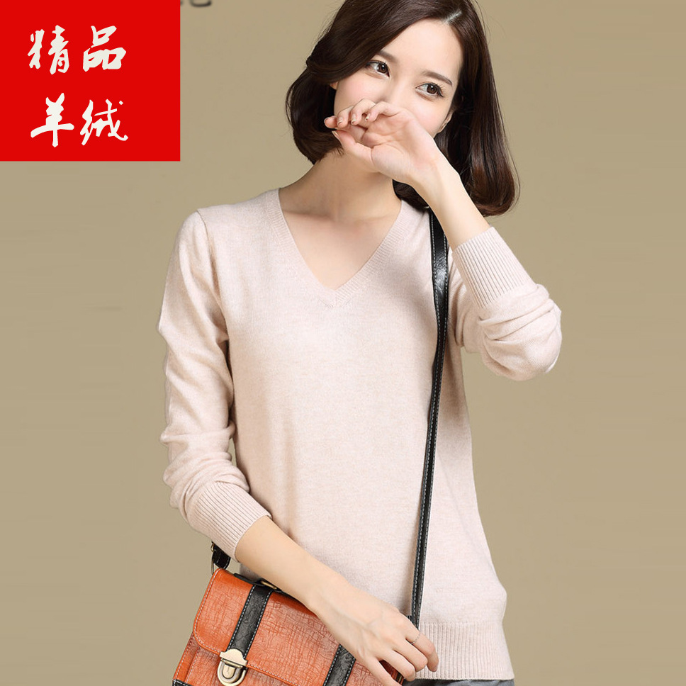 2015秋冬薄短款毛衣套頭女修身大碼V領(lǐng)打底針織衫低領(lǐng)羊絨衫潮女 /