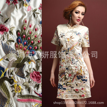 2016春夏新款女裝中國(guó)民族宮廷風(fēng)刺繡花桑蠶真絲綢大碼旗袍連衣裙 /