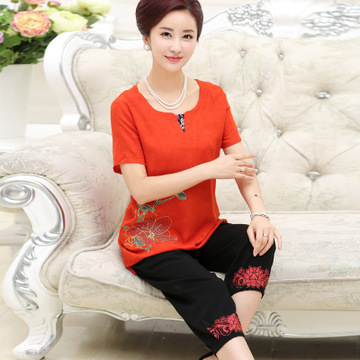 2015夏季新款中老年女裝夏裝套裝批發(fā) 中老年女裝短袖媽媽裝批發(fā) /