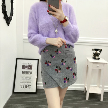女裝秋冬新款韓版寬松百搭蕾絲中長款女士上衣獺兔毛拼接打底衫裙 /