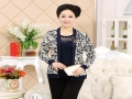 2015春秋季中老年媽媽裝簡約修身假兩件套針織開衫中婦女上衣 /