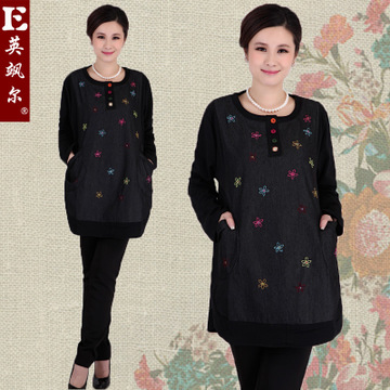 • 中老年大碼女裝長(zhǎng)袖T恤中長(zhǎng)款200斤加肥加大碼胖媽媽春秋裝 /