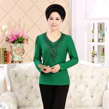 中老年女裝春裝新款T恤 2015時尚媽媽裝繡花串珠長袖T恤 /