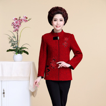 中老年女裝媽媽裝 羊毛呢鑲鉆繡花 秋冬裝外套 40-55歲 常熟現(xiàn)貨 /